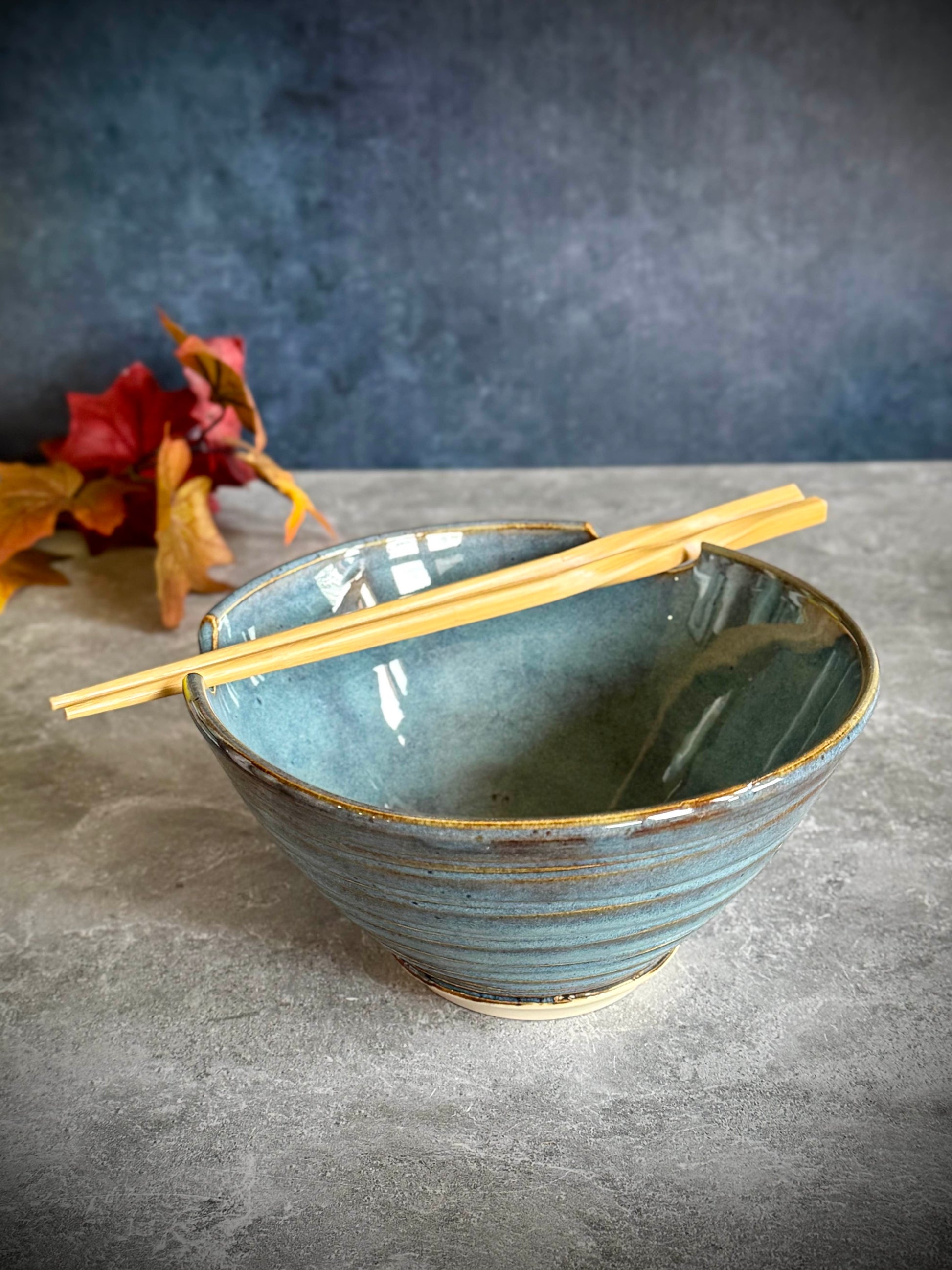 Perfect for ramen, pho, noodles, or your favorite cozy meal, it includes built-in chopstick rests for easy dining and display. The classic rounded form and serene blue tones make this bowl a customer favorite year-round.