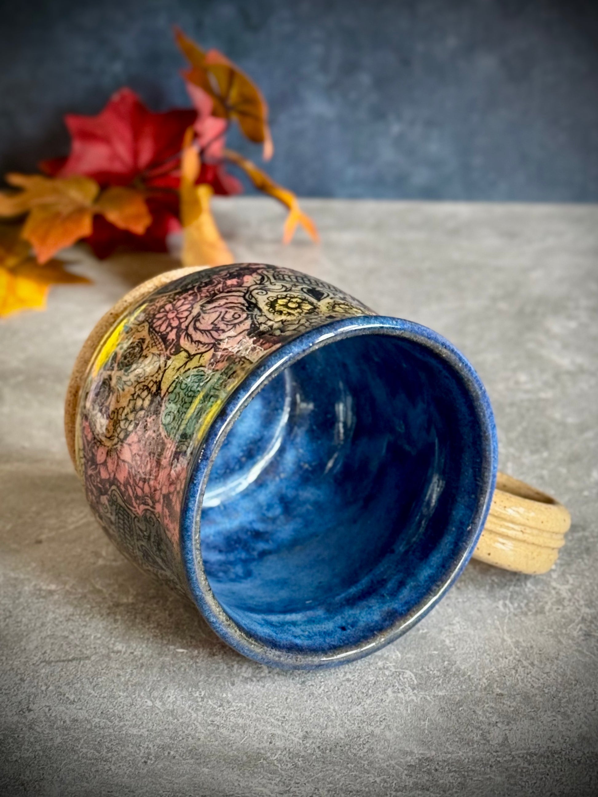 The deep blue glaze inside adds a pop of contrast against the warm stoneware body, making every sip a little more special.